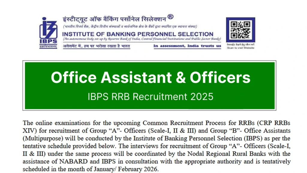 Institute of Banking Personnel Selection (IBPS), The notification for the recruitment of RRB XIV (14) Scale-I, II, III & Office Assistant (OA) post has released on the official websiteThe IBPS application form has started from 01 September 2025, and candidates can apply until 21 September 2025. The minimum age is 18 Years & the maximum age is 28 – 40 years (post wise) as of September 01, 2025. Candidates must check the complete details for the IBPS RRB 14th Recruitment 2025 provided below.